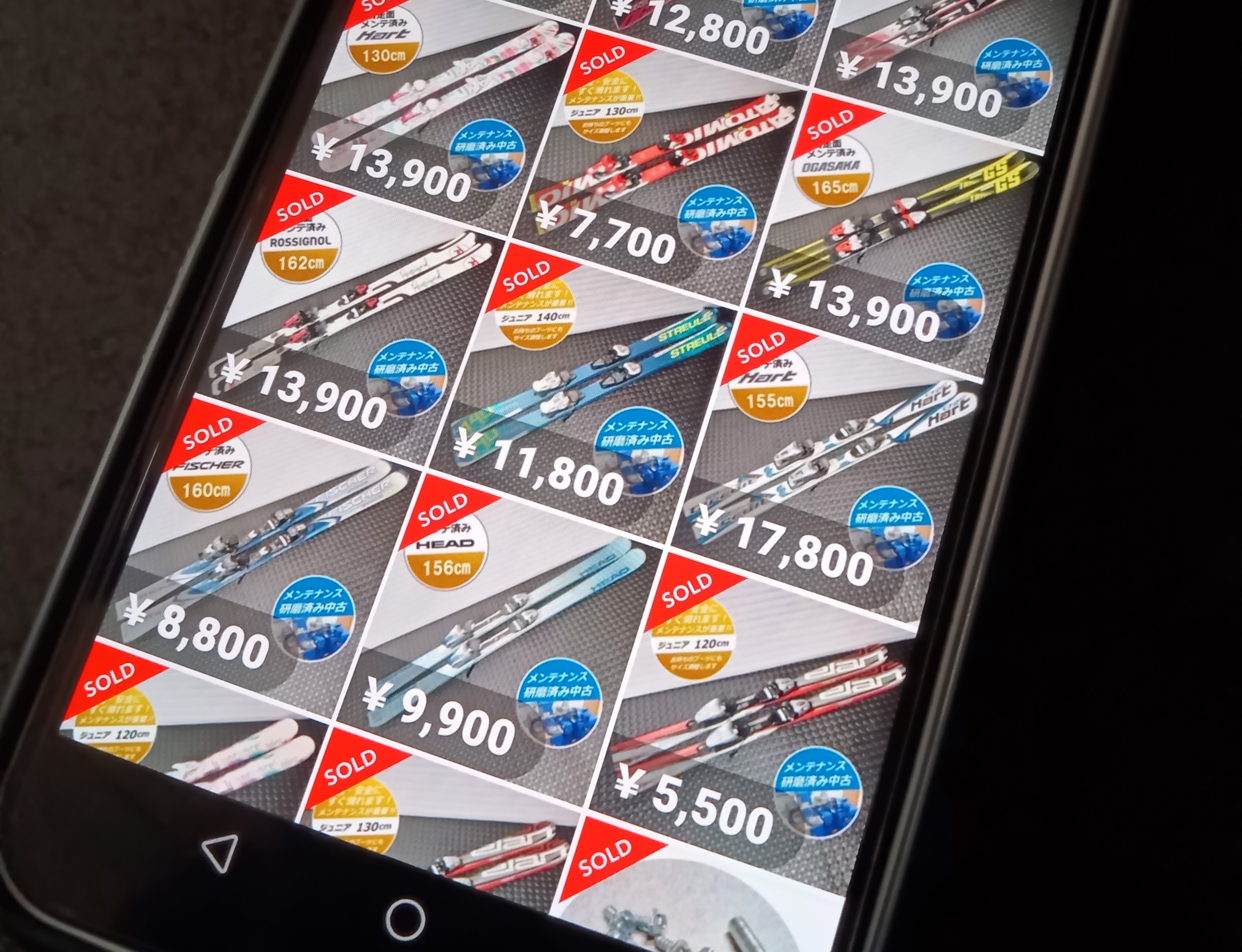 不要になったスキー板をメンテナンスし、手頃な価格で再利用品(リユース品)として販売しています。
