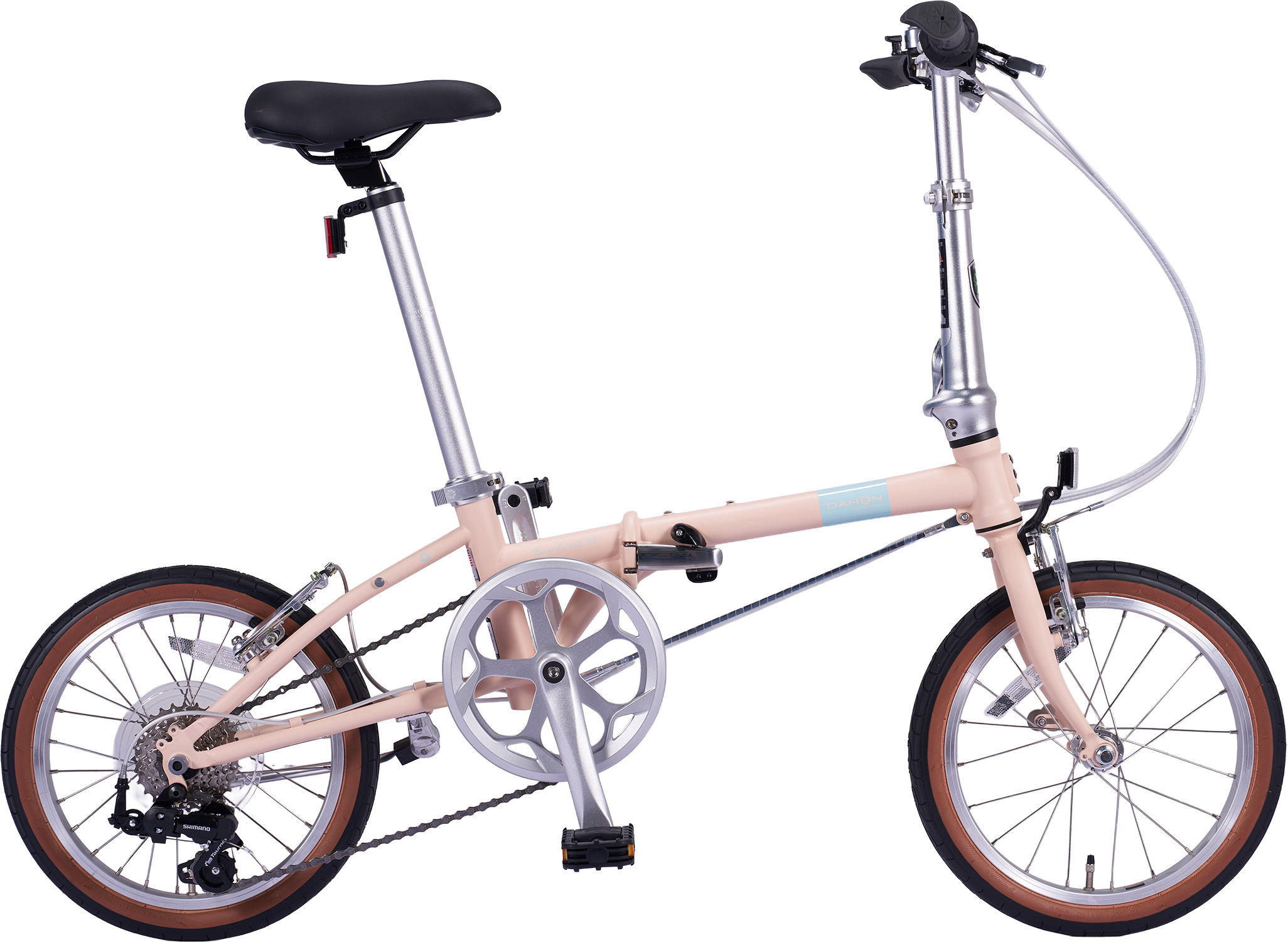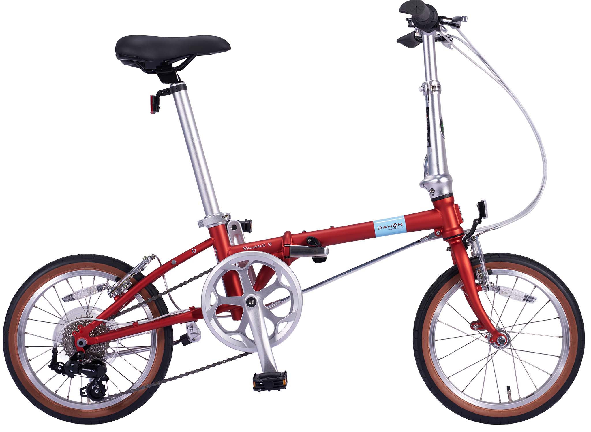 DAHON史上、最もコンパクトなモデル。Frame Material AluminumFree Wheel 4speedWheel Size 16inchFolding Size H54xW58xD27Rider Height Range 140 -180 cmWeight 12.8kg